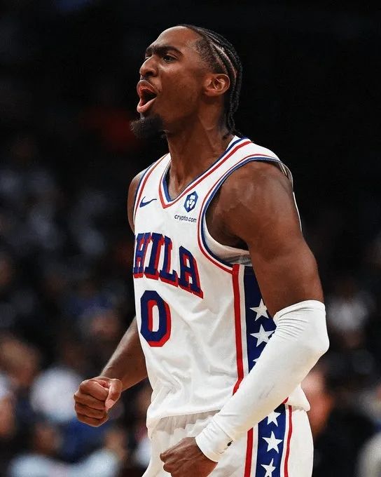 NBA官方社交媒体晒出泰雷斯-马克西高举手指比出“第一”手势的庆祝画面,配文简短而有力:“76人现在是东部第一。”这张照片背后,是费城76人开季4胜0负的完美战绩,更是一个25岁后卫的超级进化史。